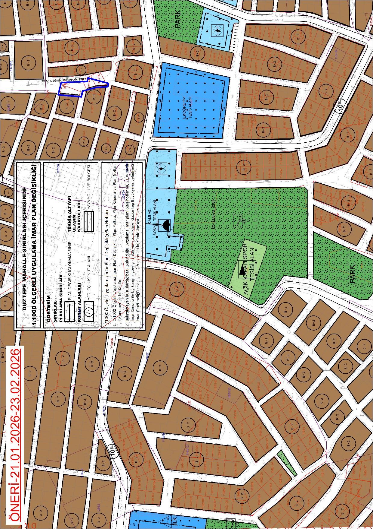 Belediye Meclisimizin 04.12.2025 tarih ve 143 sayılı kararı ile kabul edilen, Düztepe Mahallesi sınırları içerisinde 1/1.000 ölçekli Uygulama İmar Planı Değişikliği, Gaziantep Büyükşehir Belediye Meclisinin 15.01.2026 tarih 64 sayılı kararı ile onaylanmıştır.
