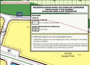Onanlı paftalar Belediyemiz girişinde askıya çıkartılmıştır. İsteyen vatandaşlar 24.04.2026-25.05.2026 tarihleri arasında mesai saatleri içerisinde görebilirler.