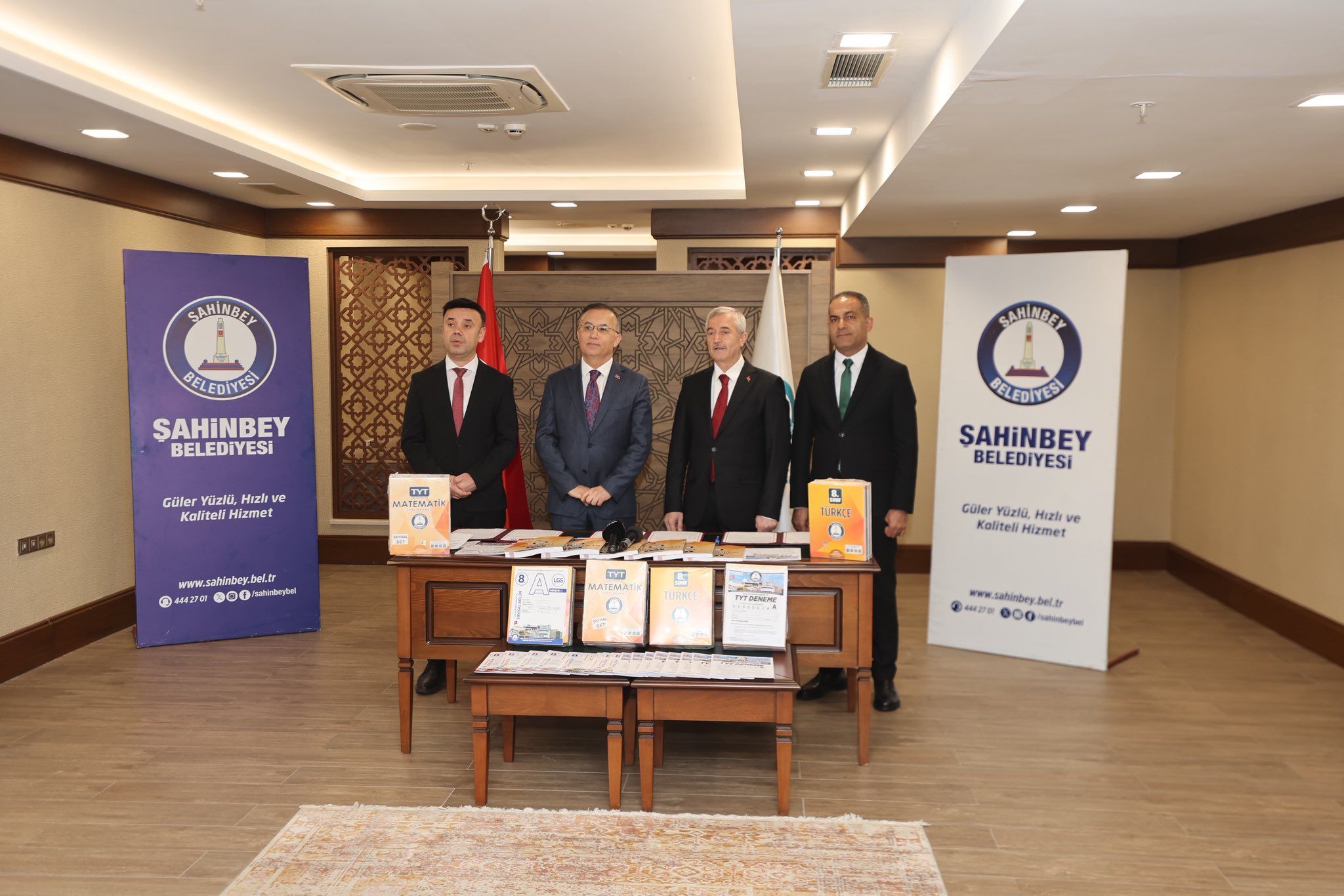 Eğitime önemli destekler sağlayan Başkanımız Mehmet Tahmazoğlu, bunlara bir yenisi daha ekleyerek, Vali Kemal Çeber ile birlikte TYT ve LGS’ye girecek öğrencilere dağıtılmak üzere için 42 bin kaynak kitap ve 192 bin deneme sınavı dağıtımı gerçekleştirmek için protokol imzaladı. Protokole Gaziantep Valisi Kemal Çeber ve Şahinbey Belediye Başkanı Mehmet Tahmazoğlu’nun yanı sıra Gaziantep İl Milli Eğitim Müdür Vekili Mehmet Çağrı Doğan ve Şahinbey İlçe Milli Eğitim Müdürü Eyüp Güneş katıldı.