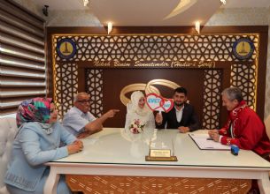 Başkanımız Mehmet Tahmazoğlu, hayatlarını birleştirmek için bekleyen işitme engelli Aynur Göçer ile Hüseyin Denizhan çiftinin nikahını işaret diliyle kıydı. Başkan Tahmazoğlu’nun çiftlere "Evlenmeyi kabul ediyor musunuz" sorusuna çiftler "Evet" yazılı kartlarla cevap verdi.
