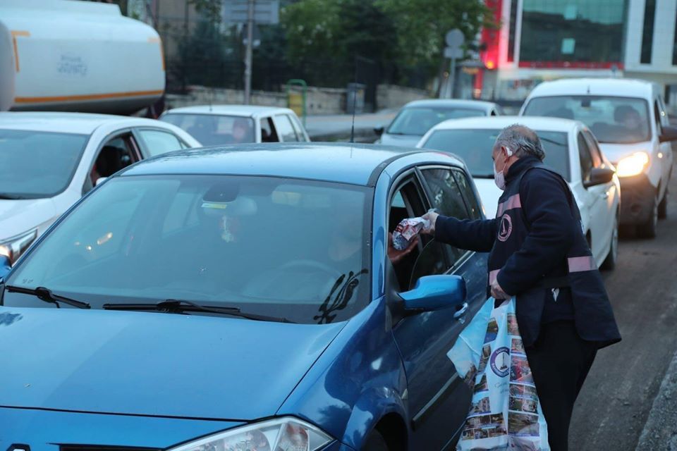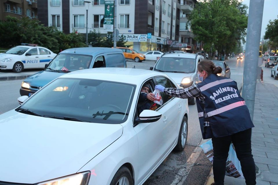 Şahinbey Belediyemiz iftara yetişemeyen vatandaşlar için İftara 5 Kala projesi ile şehrin yoğun olan kavşaklarında kumanya dağıtıyor.