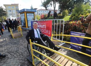 Tekerlekli sandalye ile Empati koridorunu geçen Belediye Başkanımız Mehmet Tahmazoğlu “Tüm engelli kardeşlerimizin bir kez daha 3 Aralık Dünya Engelliler Günü’nü kutluyorum. Sadece Engelliler Günü’nde değil 365 gün boyunca engelli kardeşlerimizin yanındayız. 2009 yılında göreve geldiğimiz günden bu yana 3.224 engelli kardeşimize akülü ve manuel tekerlekli sandalye dağıtımı gerçekleştirdik. 400’ün üzerinde beyaz baston, 100 den fazla işitme engelli kardeşimize işitme cihazı desteğinde bulunduk. Tüm kaldırımlarımızı, yollarımızı, parklarımızı, kamu binalarımızı engelli kardeşlerimizin kullanımına uygun hale getirdik. Engelli kardeşlerimiz bu sayede dışarı çıkıp dolaşa biliyorlar. Onları anlayabilmek için empati kurmak gerekiyor. Engelli vatandaşlarımızın neler yaşadıklarını hissetmek gerekiyor. Bu nedenle belediyemizin bahçesine Empati Koridoru kurduk. Gözlerimiz kapandığında nasıl yürüyebiliyoruz veya manuel tekerlekli sandalyede engelli kardeşlerimiz engelleri nasıl aşıyorlar, bunları bizzat yaşamak ve hissetmek adına Empati Koridoru kurduk. Tüm vatandaşlarımızı buraya davet ediyorum. Engelli olmak herhangi bir suç değil. Hepimiz engelli adayıyız ve hepimiz yarın engelli olabiliriz. Bu nedenle engelli kardeşlerimizin hayatını kolaylaştırmak hepimizin birinci önceliği olmalı. Cumhurbaşkanımız Sayın Recep Tayyip Erdoğan’a da çok teşekkür ediyorum. Engelli kardeşlerimizin evde bakımı, nakdi destekler ve istihdamları konusunda gerekli yasal düzenlemeler yapıldı. Bu anlamda destek veren tüm kurumlarımıza teşekkür ediyorum” diye konuştu.
