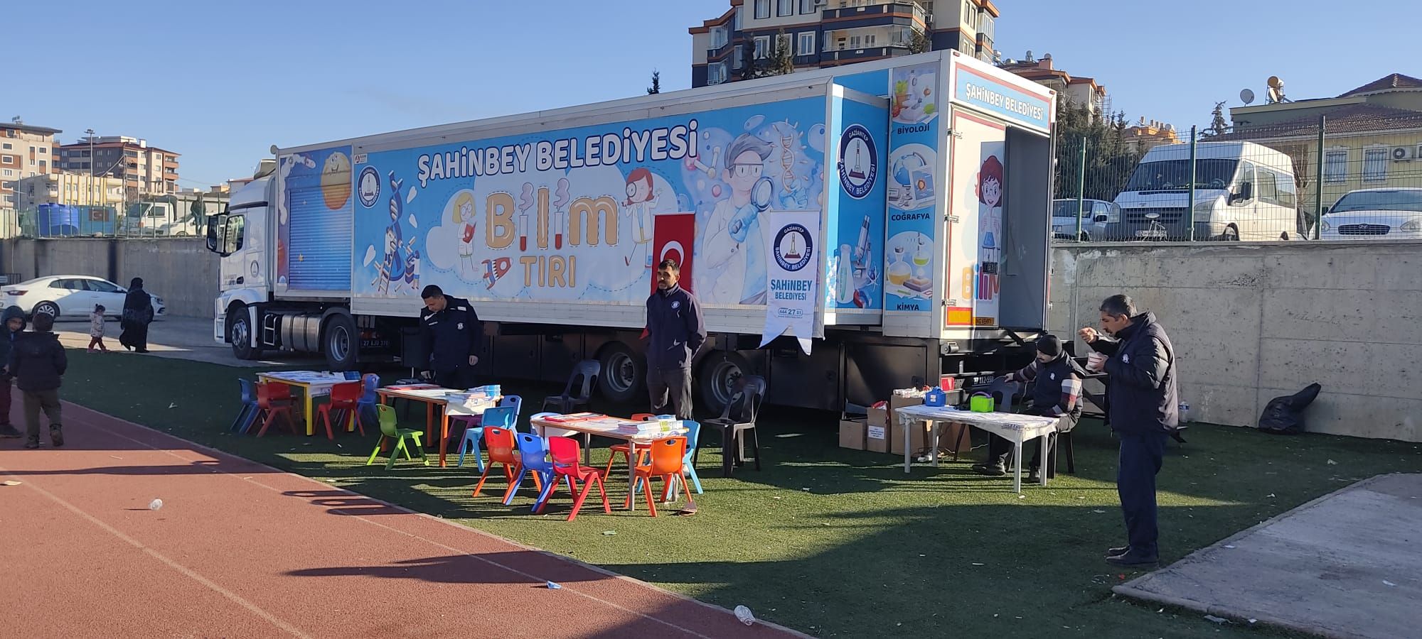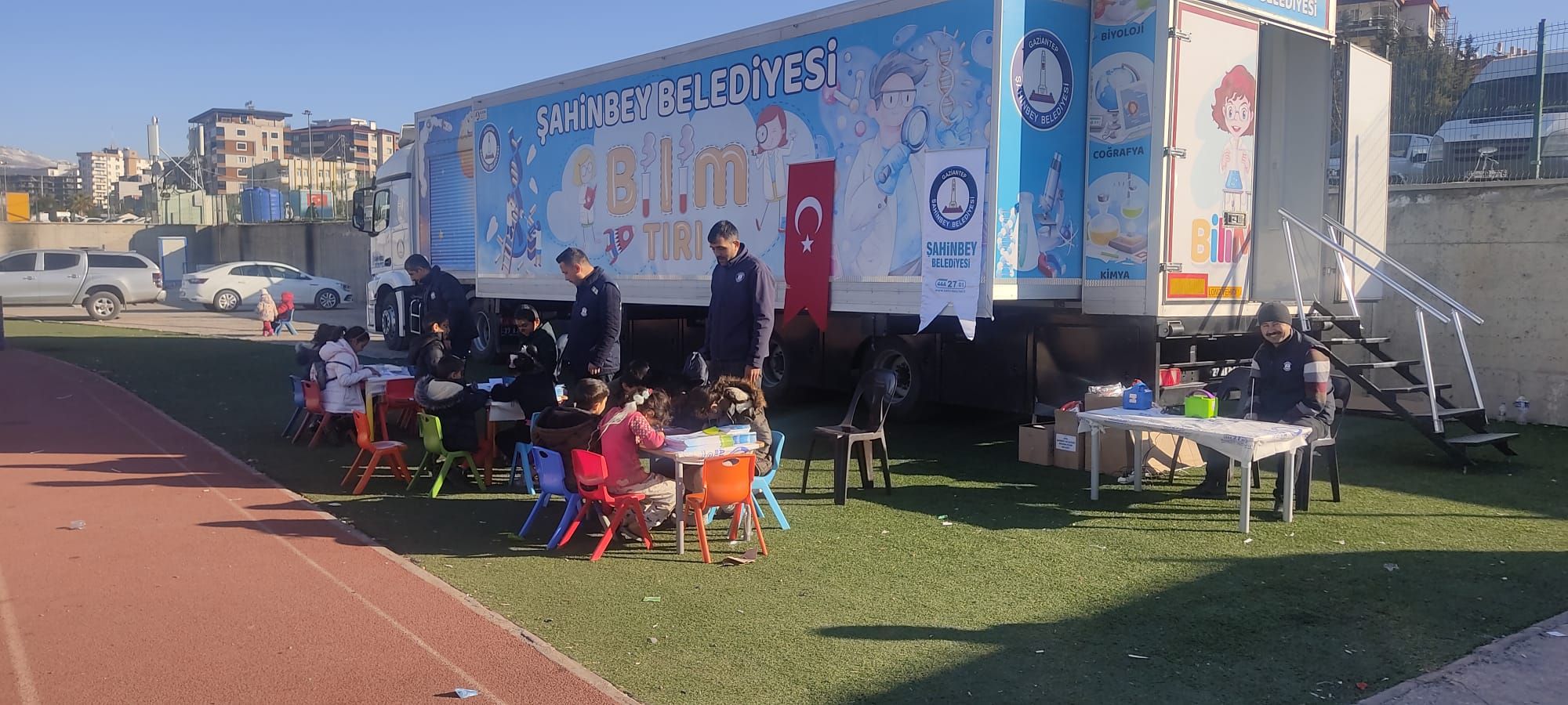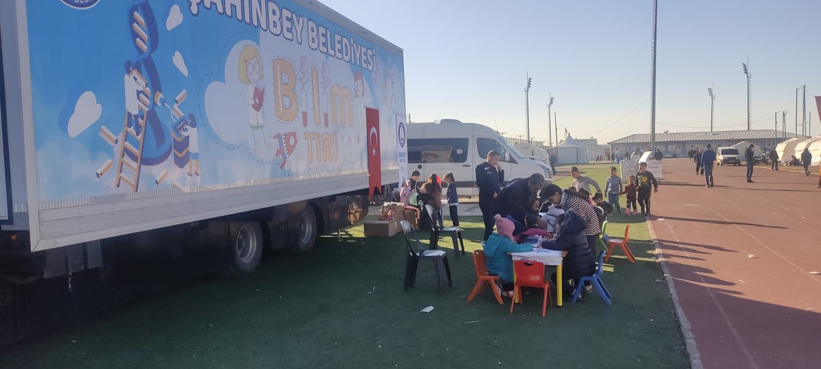 Deprem bölgesindeki çalışmalarına ara vermeden devam eden Belediyemiz depremde yakınlarını ya da evini kaybeden, depremden etkilenen çocukları da unutmadı. Belediyemiz Adıyaman’da depremzede çocuklar için Bilim Tırı’nı çocuklarla buluşturdu.
