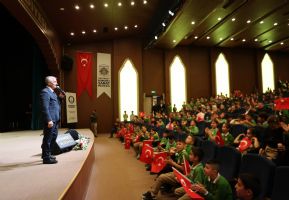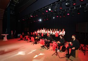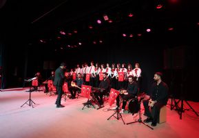 Yaklaşık 40 kişilik bir koro ve 7 kişilik saz ekibinden oluşan topluluk, Cumhuriyet temalı eserleri seslendirerek öğrencilere muhteşem bir konser verdiler. Katılımcılar, ellerinde Türk bayraklarıyla salonu doldurarak, coşku ve gururu birlikte yaşadı.