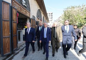 Ziyaret kapsamında, Halep’in tarihi bölgelerinde incelemelerde bulunan Başkanımız Mehmet Tahmazoğlu ve beraberindeki heyet, ecdat mirası olan kadim eserlerde restorasyon, koruma ve yeniden canlandırma çalışmalarına ilişkin değerlendirmeler yaptı. Yapılan teknik incelemeler, iki şehir arasında kültürel mirasın korunmasına yönelik ortak bir perspektifin gelişmesini sağladı.