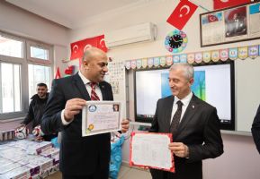 Başkanımız Mehmet Tahmazoğlu, çocuklara verdikleri önemin altını çizerek “Çocuklarımızı çok seviyoruz. Onlar ülkemizin geleceği ve umudu. Geleceğe onlarla çok daha güvenle bakıyoruz. İnsan sevdiği işi yapınca hiç yorulmazmış. Sizler de severek okudunuz ve bugün karne aldınız. Şimdi ise 15 günlük tatil zamanı. İlkokulda okuyan 1, 2, 3 ve 4’üncü sınıf öğrencilerimize 1 milyon 150 bin kitap dağıtıyoruz. Öğrencilerimiz hem tatil yapacak hem de kitap okuyarak ikinci döneme daha hızlı ve güçlü bir başlangıç yapacak.”