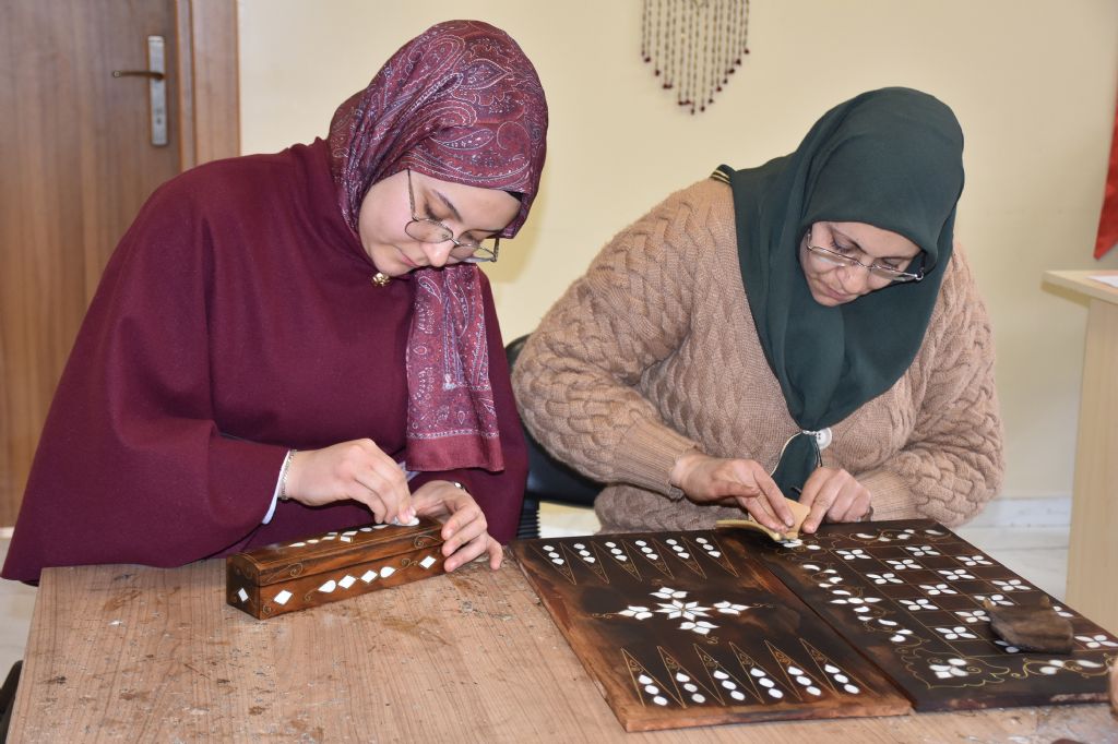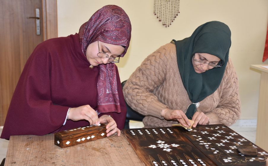 Sedefkarlık olarak nitelendirilen sedef kakma sanatı kapsamında kadın kursiyerler, kılıç, kama, sandık, ayna ve rahle gibi birçok ürüne sedef işliyor. Genelde erkeklerin yaptığı sedef kakma sanatı kursuna katılan kadınların ürettiği ürünler, göz kamaştırıyor. Kadınların ürettiği eşyalar, çeşitli hediyelik eşya galerilerinde satışa sunuluyor. Usta öğreticiler tarafından verilen eğitimlerde midye ve istiridye gibi deniz hayvanlarının kabuğunda bulunan sert ve beyaz maddeyi işçilikle ortaya çıkaran kadınlar, daha sonra ceviz ağacından yaptıkları ürünlere işledikleri malzemeyle sedef kakma sanatını ortaya koyuyor.
