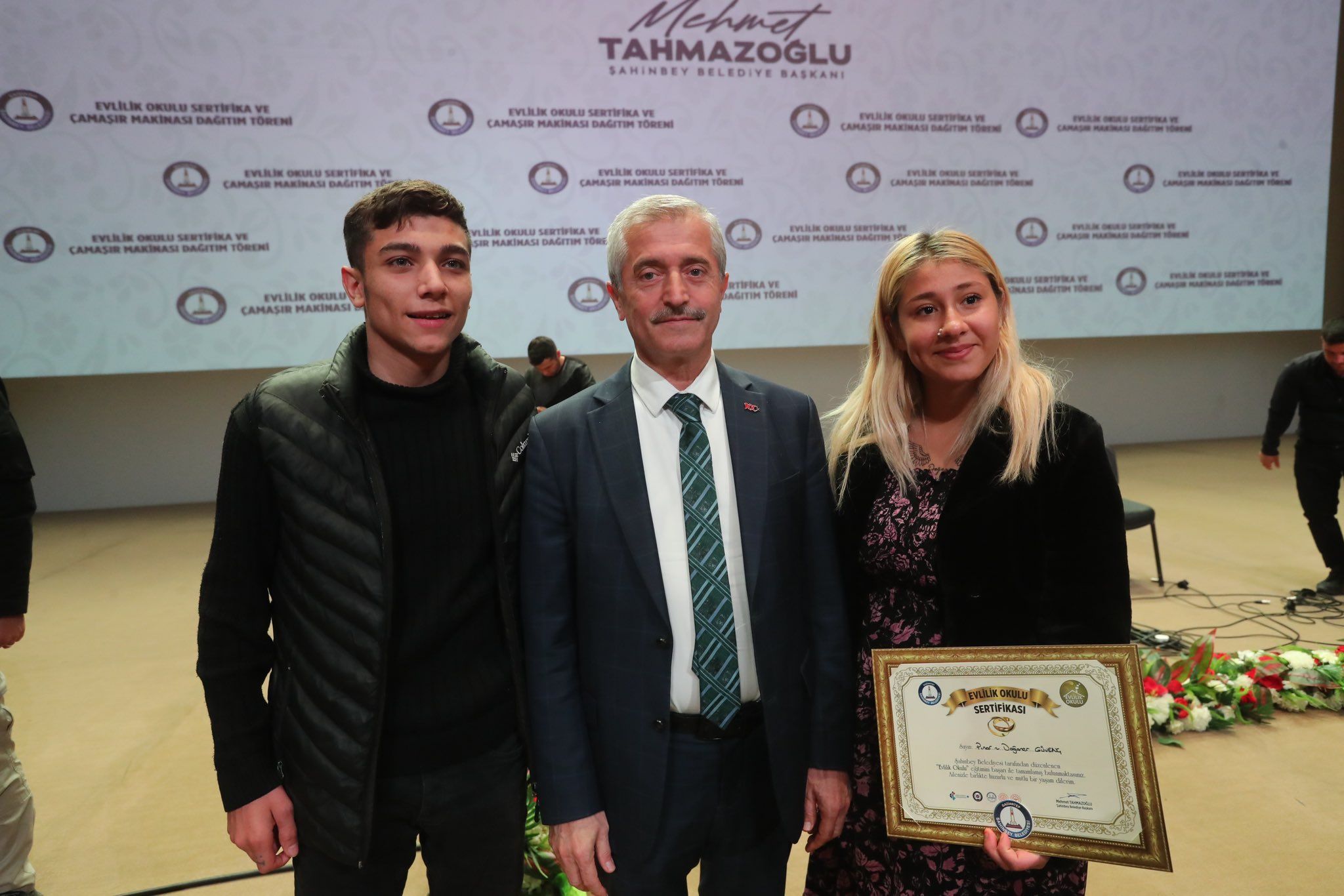 Başkanımız Mehmet Tahmazoğlu, evliliği teşvik etmek için yeni evlenecek çiftlere destekler verdiklerini belirterek, “Şahinbey Belediyesi olarak, Cumhurbaşkanımızın 2025 yılını "Aile Yılı" ilan etmesi kapsamında aileyi ve evliliği destekleyen çalışmalarımızı sürdürüyoruz. Geçtiğimiz yıl evlenen çiftlerimize 40 bin lira geri ödemesiz nakdi destek sağladık. Bu yıl ise bu desteği 50 bin liraya çıkardık. Bunun yanında "Evlilik Okulu" projemizde eğitimini tamamlayan çiftlere çamaşır makinesi ile bay ve bayan kol saati hediye ediyoruz. Maddi durumu yetersiz olan çiftlerimize ise buzdolabı, çamaşır makinesi, fırın, elektrik süpürgesi, halı ve 7 kişilik oturma grubu gibi temel ev eşyalarını destek kapsamında hediye ediyoruz. Amacımız, "Evlenmeyen kalmasın" anlayışıyla gençlerimizin yuva kurmasını kolaylaştırmaktır. Bu çalışmalar sonucunda belediyemiz, müracaat sayısı ve kıyılan nikah sayısı bakımından Türkiye’de birinci sıraya yükseldi. 2025 yılında 9 bin 502 çiftimizin nikahını kıyarak rekor kırdık. Gaziantep’te kıyılan toplam nikahların yüzde 55’i tek başına Şahinbey’de gerçekleşti” dedi.