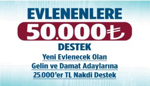 Yeni Evlenecek Çiftlere 50.000 Destek
